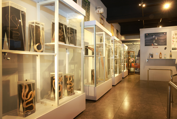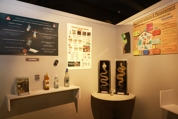 The department museum displays photos, charts, X-rays, wet specimen, plant poisons, venomous and non venomous snakes, clay models, skeleton, bones and weapons including firearms and cartridges and sharp and blunt weapons. Crime scene models are an added attraction. Facilities for demonstrating moot court to students are made available. Demonstration room, Practical hall and Research room are also available. The department Library has more than 170 text books and 120 numbers of national and international journals. The Autopsy Hall has two autopsy tables and facilities for conducting medico legal autopsies. Cold chamber to preserve 4 dead bodies is also available.