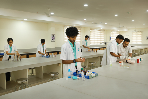 Practice of medicine is inevitable without the prescription of drugs. Pharmacology is a field of medicine with never ending transformation and with several advances. The department of Pharmacology is committed in providing the best quality of Competency Based Medical Education (CBME) to the undergraduate medical students. It functions with the aim of imparting knowledge and skills regarding the drug administration to Medical and Nursing students. It emphasizes on imparting training to students on rational prescription of drugs and Pharmacotherapeutics. It is heading forward with dynamic and dedicated faculty who has immense passion for teaching. Students have exposure to various teaching methodologies including small group discussions, e-learning, seminar presentations and role plays. Department of Pharmacology is also actively involved in various activities of the institution like Adverse drug reactions monitoring, antimicrobial stewardship, undergraduate research etc. Activities of Pharmacovigilance are being carried out from 2012 and the Adverse Drug Reaction Monitoring Centre, under the Pharmacovigilance Programme of India (PvPI), started functioning in the department from 2014.
