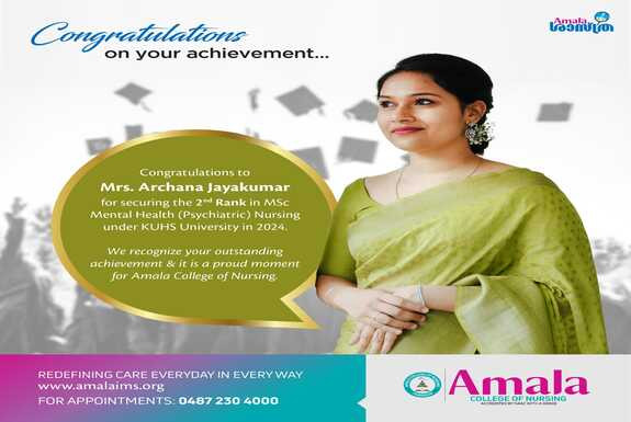അമലയിലെ അർച്ചന ജയകുമാറിന് എം. എസ്. സി നഴ്സിങ്ങിൽ രണ്ടാം റാങ്ക്.