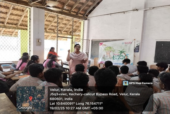 വേലൂർ ഗ്രാമപഞ്ചായത്തിലെ R.S.R.V.H.S.S സ്ക്കൂളിലെ പത്താം ക്ലാസ്സ് വിദ്യാർത്ഥികൾക്ക് "Exam Stress Relief" ബോധവൽക്കരണവും, റിലാക്സേഷൻ പ്രവർത്തനങ്ങളും നൽകി